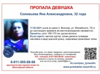 32-летняя Яна Соловьева ушла из дома на Можайского, 72. На протяжении нескольких дней о вологжанке нет известий. К поискам подключились волонтеры.
