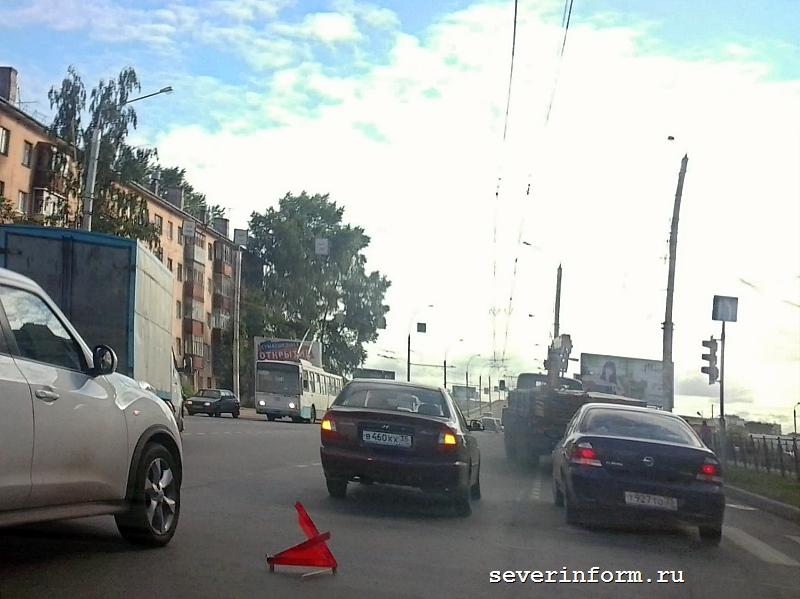 Большая пробка образовалась в Вологде из-за аварии с участием двух иномарок