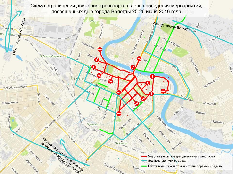 В Вологде на День города ограничат движение транспорта (СХЕМА)