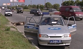 Лося сбили на одной из оживленных улиц в Череповце