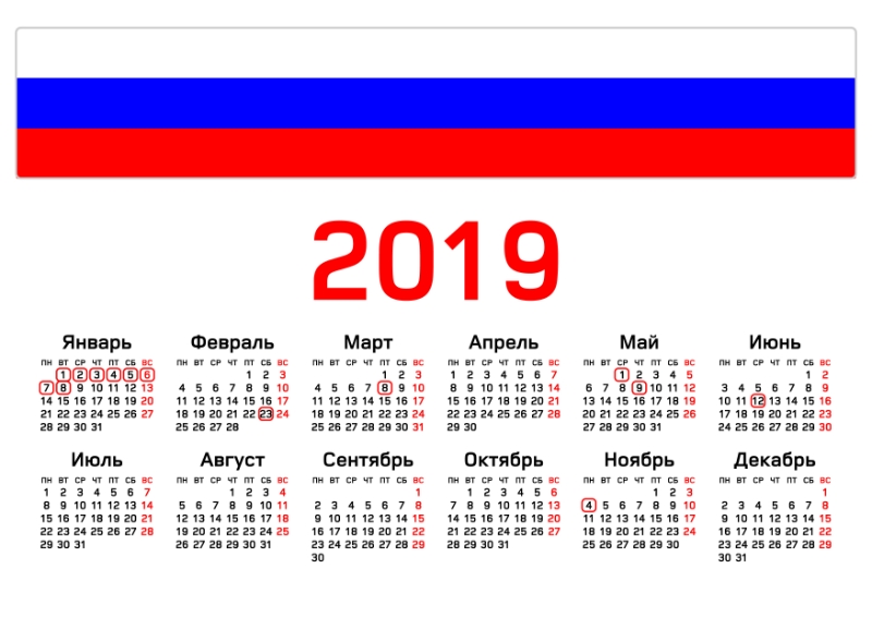 «В 2019 году будут следующие дни отдыха: с 30 декабря 2018 года по 8 января 2019 года; с 23 по 24 февраля; с 8 по 10 марта; с 1 по 5 мая и с 9 по 12 мая; 12 июня; со 2 по 4 ноября», — говорится в проекте.