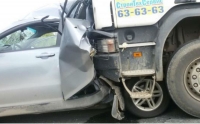 У села Нелазское в ДТП не разъехалось четыре машины. Самые серьезные повреждения получила Киа. Ее практически протаранил самосвал.