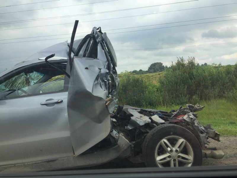 Задняя часть Киа превратилась в лепешку, багажник и пассажирские места уничтожены. Пострадавших несколько человек с различными травмами, одна пострадавшая женщина госпитализирована, еще одна - отказалась от госпитализации.