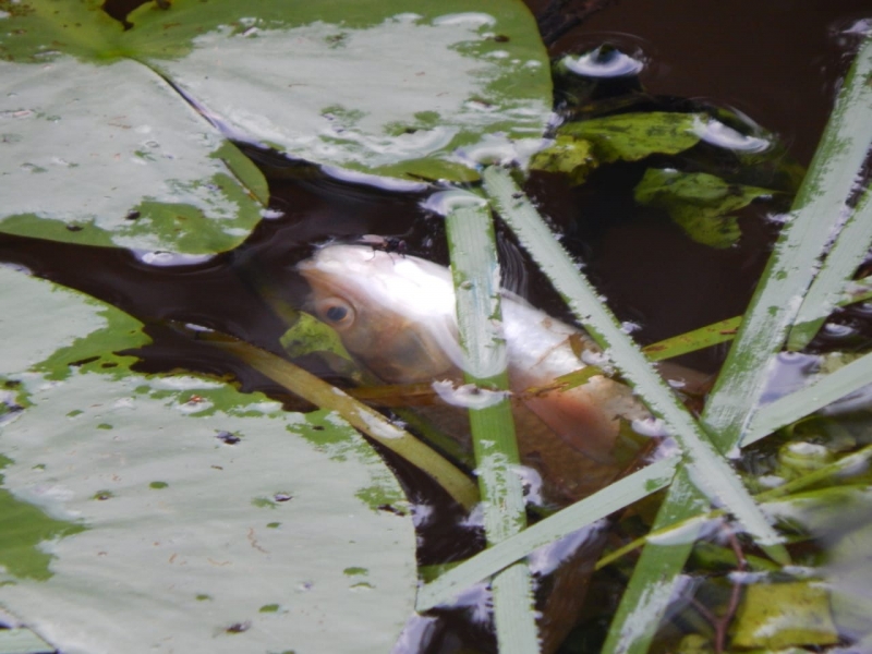 Вода в Комеле была мутная и пенная, ее поверхность устилала плавающая вверх брюхом рыба. Полицейские вместе с экологами и представителями рыбоохраны взяли пробы воды и часть мертвой рыбы.