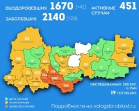 Всего в регионе 2140 подтвержденных случаев. За сутки их число увеличилось на 26. В Череповце заразились 17 человек. Общее число заболевших составило 502, но большинство из них уже поправилось. В Вологде 6 новых пациентов, в Шекснинском районе 2, еще один - в Никольском районе.