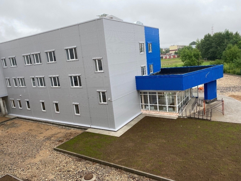 Работы сейчас находятся в финальной стадии. Уже выполнен монолитный каркас 3-этажного здания, обшивка фасада панелями, стяжка полов, кровля, смонтированы оконные и дверные блоки, проведены инженерные коммуникации. Внутренние отделочные работы почти закончены, ведется благоустройство территории. Предстоит закупить оборудование и мебель, а также получить разрешение на ввод объекта в эксплуатацию.