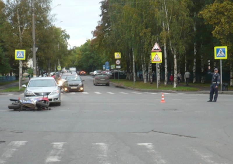 Мотоциклист попал под колеса иномарки в центре Вологды