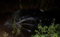 Водитель Мицубиси опрокинулся в кювет и врезался в дерево