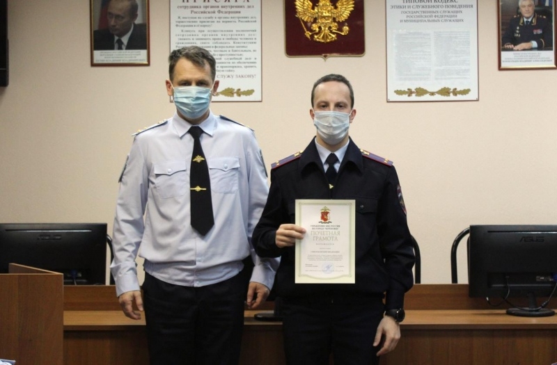 Полицейского наградили и на службе. От начальника городского УМВД Евгений Смирнов получил почетную грамоту, сообщает ИА "СеверИнформ".