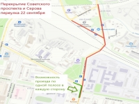 На этот период закроют участок Советского проспекта от Курсантского бульвара до Серова переулка. Здесь будут проводить асфальтирование. При этом на перекрестке с улицей Комсомольской разрешат движение в обе стороны.