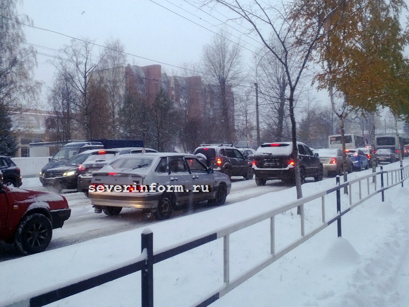 Вологда встала в пробках из-за аварий и снегопада