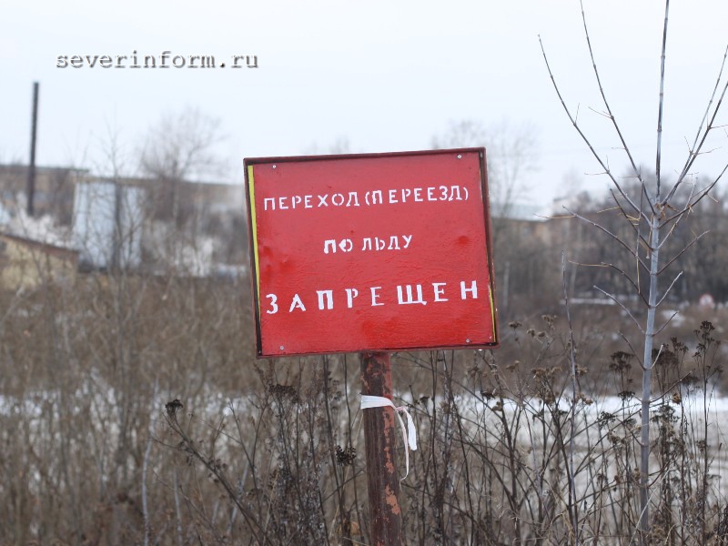 Сотрудники Центра гражданской защиты Вологды ставят информационные аншлаги с надписью «выход на лед запрещен» возле памятника 800-летия Вологды, в начале улицы Ленинградской, у Соборной горки, напротив речного порта. Это места, где горожане каждый год устраивают самовольную ледовую переправу, а также занимаются любительской подледной рыбалкой.