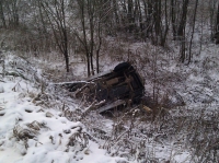 Автомобиль в Вологодской области съехал в кювет и встал на крышу