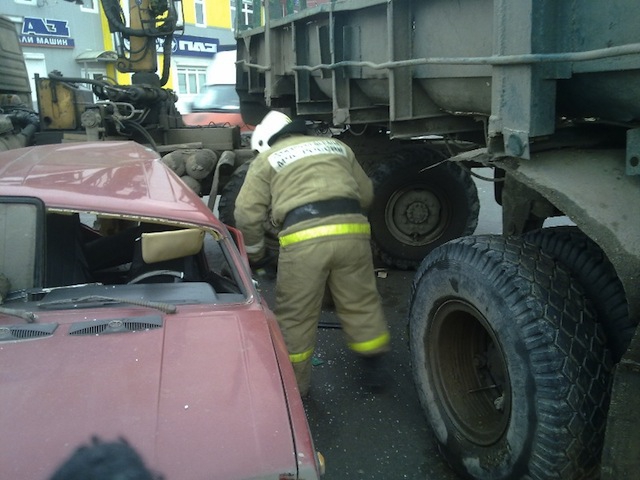 Грузовик врезался в легковушку в Вологде