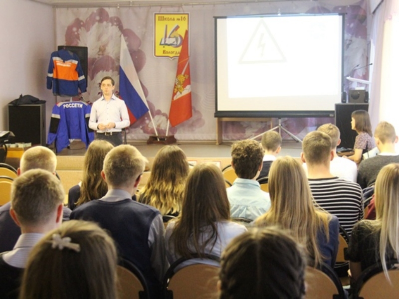Сотрудники производственного отделения «Вологодские электрические сети» филиала ПАО «МРСК Северо-Запада» «Вологдаэнерго» (дочерняя компания ПАО «Россети») провели урок по профилактике детского электротравматизма для учеников десятого класса МОУ «Средняя общеобразовательная школа № 16» в Вологде.