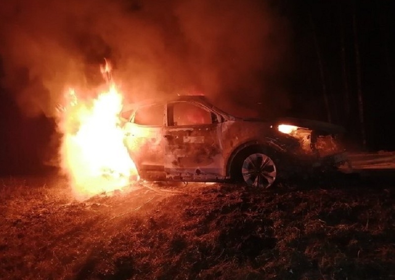 «Хендай» сгорел в темноте на трассе под Кирилловом