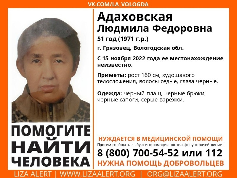 Людмила Адаховская исчезла 15 ноября. С тех пор о ее местонахождении ничего не известно.
