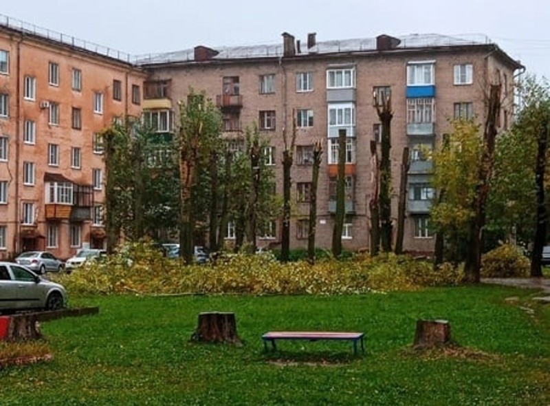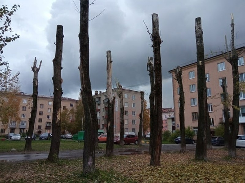 Во дворе дома стояли тополя. Коммунальщики решили, что деревья старые и крона может причинить вред домам при сильном ветре. Поэтому полностью ее срезали.