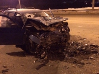 Две легковушки получили серьезные повреждения в лобовом столкновении на Октябрьском мосту