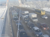 Несколько аварий спровоцировали большую пробку на Октябрьском мосту