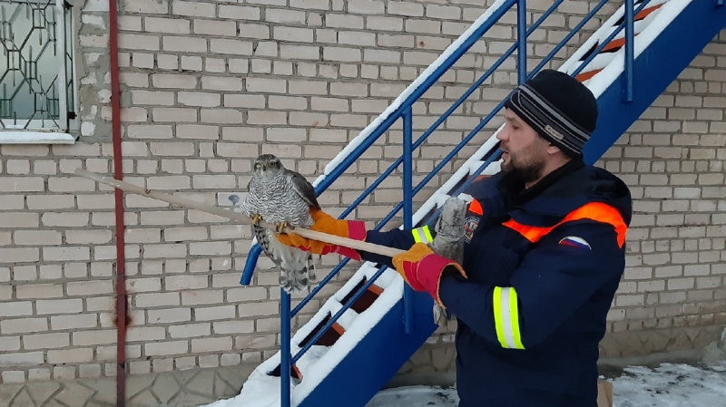 Изможденного ястреба, лежащего на тротуаре, увидели посетители магазина на ул.Архангельской накануне. 21 января.