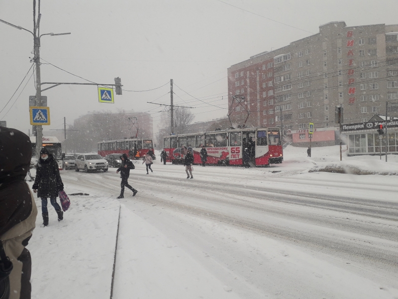 Затор случился в районе перекрестка проспекта Победы и улицы Юбилейной. Несколько вагонов скопились на этом участке около 9:20 во вторник, 22 февраля.