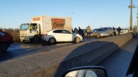 На опубликованных Пятым каналом кадрах заметно, что часть моста перекрыта сгрудившимися автомобилями. По предварительным данным, в результате ДТП пострадало несколько человек .