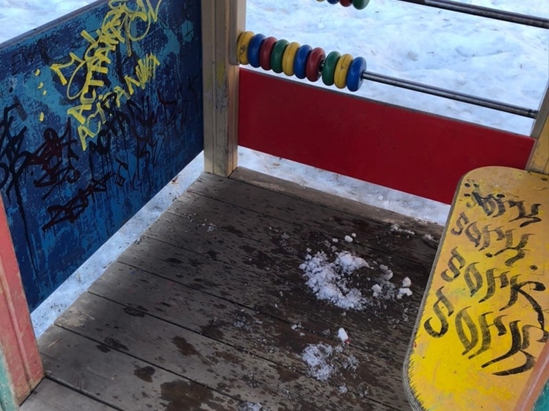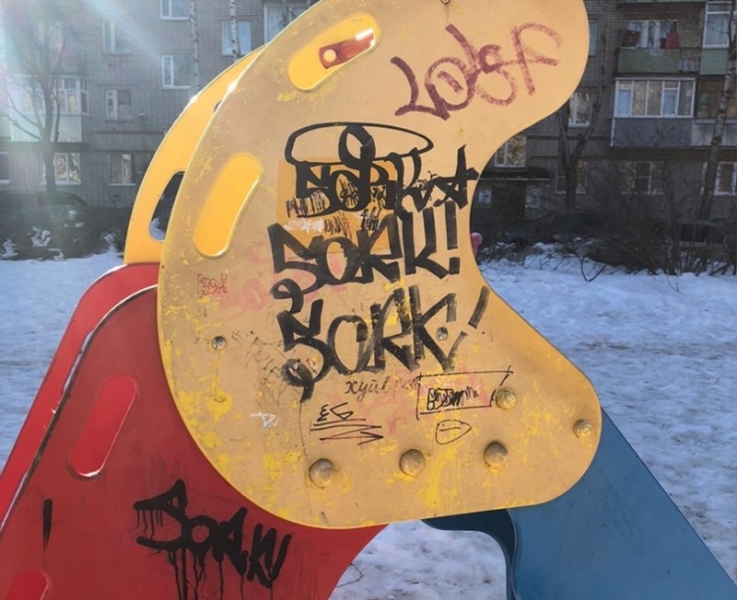 Стоит отметить, что проблема с «письменами» не только на этой площадке. Надписи красуются на павильонах, остановочных комплексах, стенах домов. Поймать за руку автора практически невозможно, а вот избавиться от «художественного воплощения замысла» сложно, сообщает ИА «СеверИнформ».