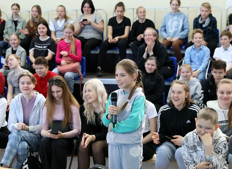 Все пятеро - участники Олимпиады в Пекине. Они поделились опытом, как добиться такого успеха с теми, кто только начинает свой путь в спорте. Ребята засыпали известных спортсменов вопросами на самые разные темы: «Почему стали заниматься спортом? Какие эмоции испытывает спортсмен за секунду до старта и после финиша? Какие качества воспитывают в спортсменах поражения? Хорошо ли Максим, Евгения и Артем учились в школе? Сохранилась ли первая медаль? О чем спортсмен думает во время забега? Как складывается общение с коллегами из-за рубежа?»