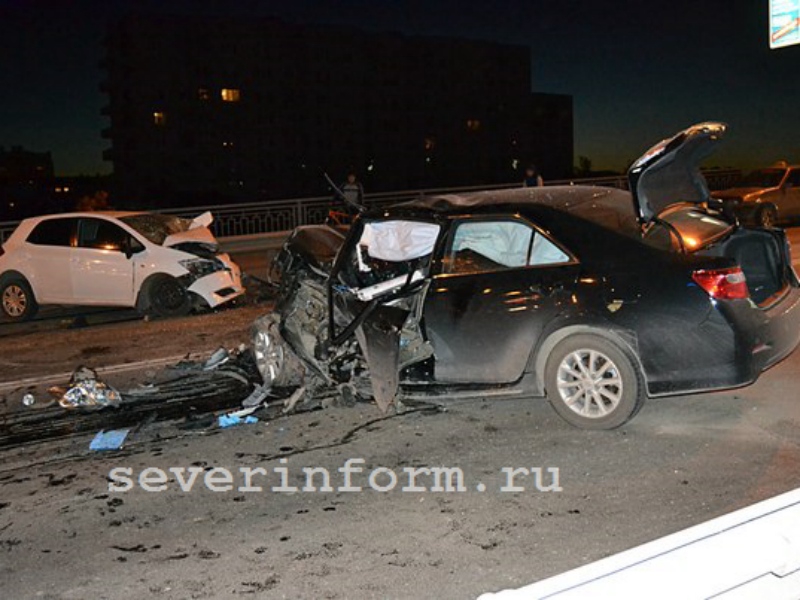 Две машины столкнулись на мосту в Вологде. Один человек погиб и двое серьезно пострадали.