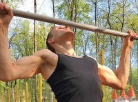 На этот раз Сергей Жестянников пообещал смартфон тому, кто больше всех подтянется на турнике.
