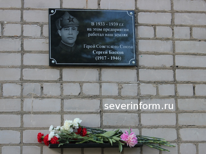 Мемориальную доску памяти героя Советского Союза Сергея Баскова открыли в Соколе в пятницу, 22 июня. В торжественной церемонии приняли участие около 60 человек, среди которых — школьники, представители власти и сотрудники Сокольского ЦБК, на фасаде которого и разместили доску, сообщает ИА «СеверИнформ — Новости Вологодской области».