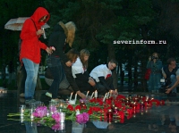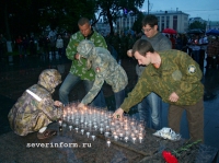 Участники акции возложили цветы к мемориалу, зажгли свечи и выложили из них слово «Помним». Также память погибших воинов почтили минутой молчания.