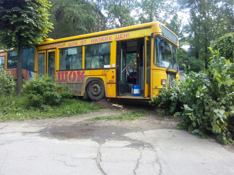 Пассажирский автобус выехал на газон и врезался в дерево в Череповце после столкновения с двумя автомобилями. Авария произошла в 14.52 возле дома на Ленина,32.