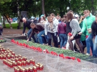 Собравшиеся почтили память погибших минутой молчания, возложили цветы и свечи к мемориалу.
