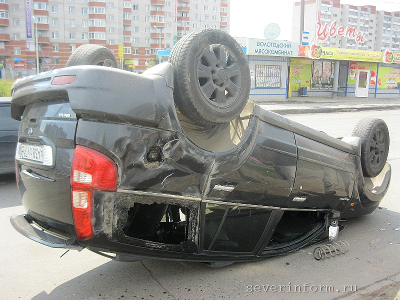 Внедорожник в Вологде уходил от столкновения и перевернулся