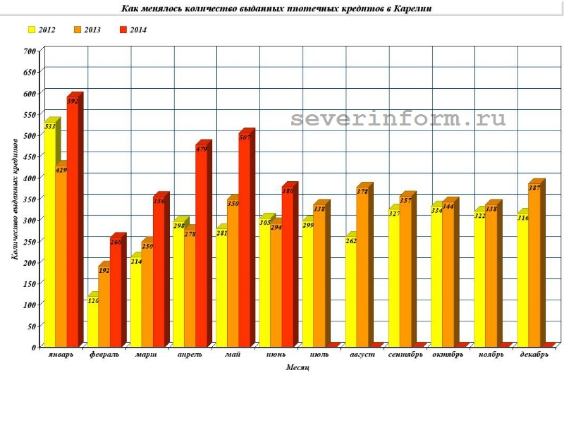 «Если сравнивать показатели по количеству взятых ипотечных кредитов за январь-июнь 2014, 2013 и 2012 годов, то больше всего кредитов было взято именно в первом полугодии текущего года. Так, с января по июнь 2013 этот показатель составляет 1793 кредита. А за первое полугодие 2012-го, ипотеку в Карелии взяли 1751 раз», - рассказали ИА «СеверИнформ» в федеральном агентстве по ипотечному жилищному кредитованию.