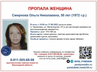 Горожанка не дает о себе знать родственникам уже почти неделю. Женщина ушла из дома на Металлургов, 27 в ночь на 17 августа. С тех пор о местонахождении череповчанки ничего не известно.
