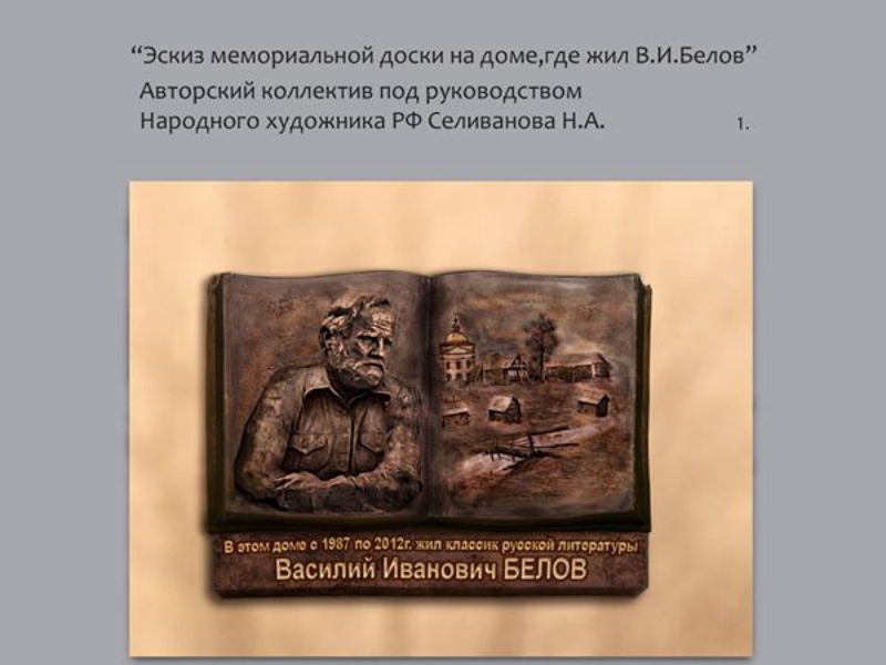 Эскизы мемориальной доски и памятника Василию Белову уже разработаны