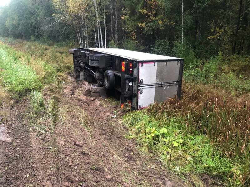 В Вологодской области фура опрокинулась в кювет