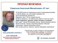 Всех, кто что-то знает о местонахождении Анатолия Соловьева, просят позвонить по телефону полиции 102, либо на горячую линию волонтеров ПСО: 8911-505-68-98, также можно написать на электронную почту poisk_detei35@bk.ru, сообщает ИА «СеверИнформ».