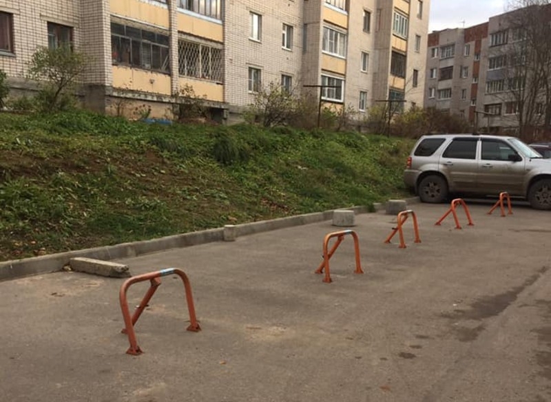 На общей парковке у дома на Дзержинского, 35 жители самовольно установили барьеры
