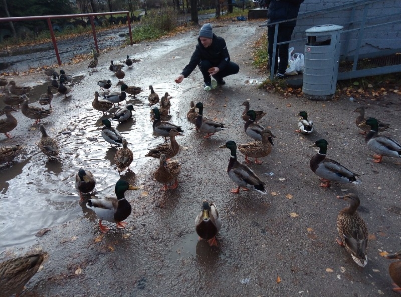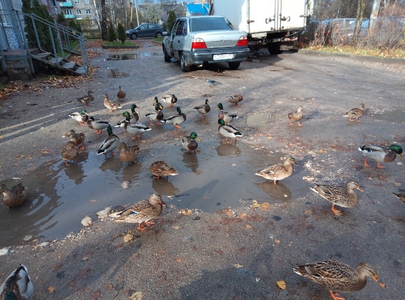 Город буквально заполонен утками. Они везде: на улицах, у магазинов, около жилых домов. Птицы настолько привыкли к тому, что их подкармливают, что практически перестали искать корм самостоятельно.