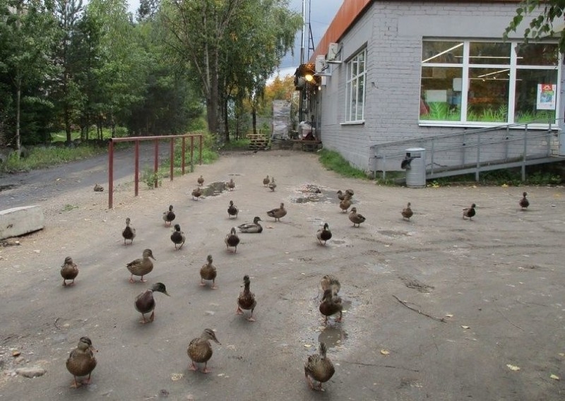 "Утки приходят на завтрак, обед и ужин к магазинам", — пишет Лидия Вещагина под фотографиями, сделанными прямо на улице. Устюжане добавляют свои снимки на сайт местной газеты "Вперед".