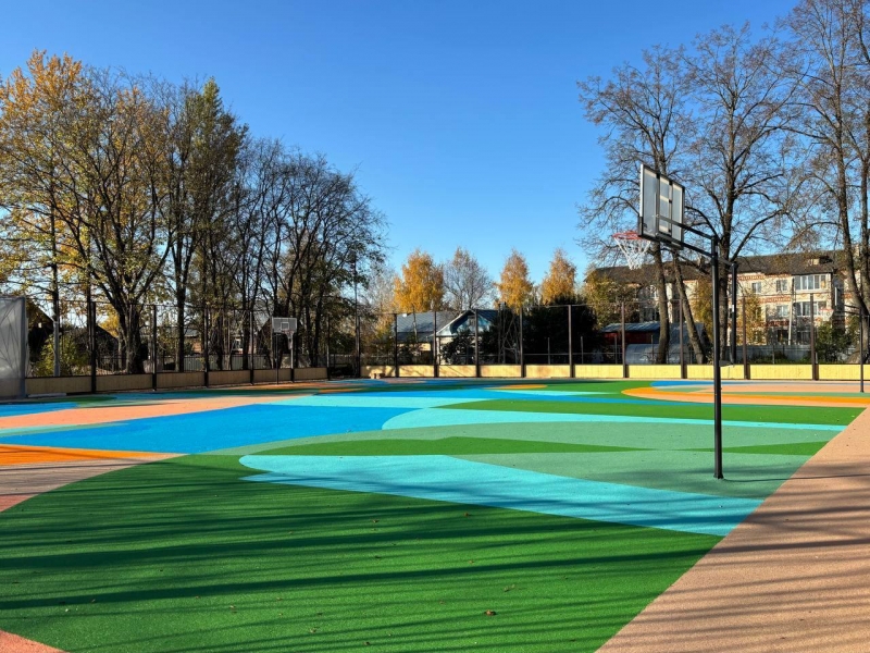 На спортивной площадке уже завершены подготовительные работы, установлены ограждения, баскетбольные кольца и покрыто резиновым покрытием. Воркаут-зона также получила необходимое покрытие и оборудована тренажёрами. Детская площадка обустроена безопасным покрытием, продолжается установка игрового оборудования. Чаша искусственного водоема выполнена, прилегающая территория выложена брусчаткой. Пространства для общественных мероприятий также приобрели законченный вид благодаря устройству площадок из натурального камня и оформлению уникального пространства «крафтового лабиринта». Кроме того, создана зона тихого отдыха возле водоёма с беседкой и частично смонтированы фонари уличного освещения.