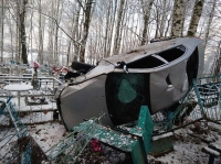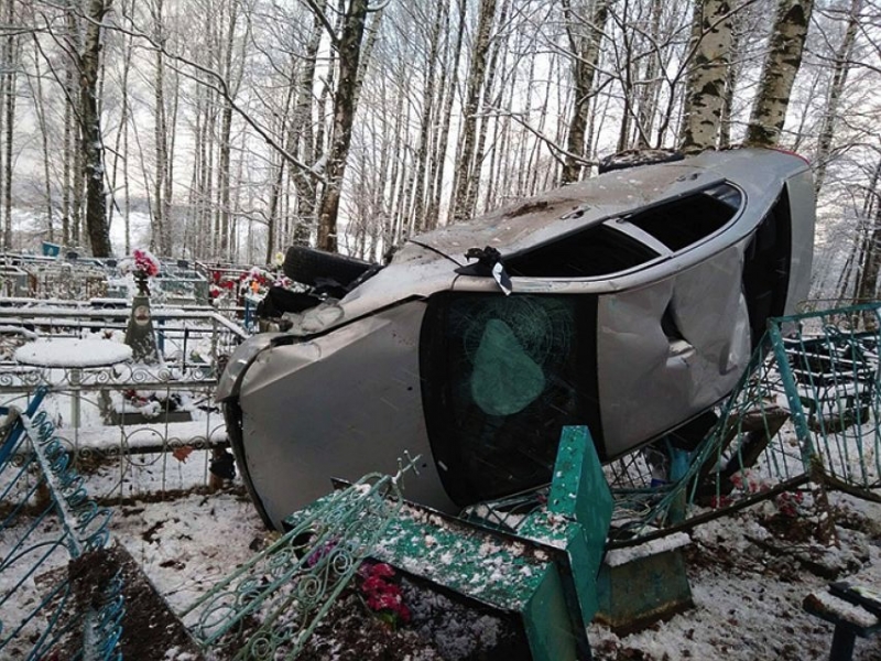 Машина сломала несколько оград, памятников и надгробий и упала на бок. Водитель не пострадал, сообщает ИА «СеверИнформ».