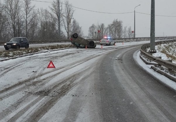 Машина автомобилистки перевернулась на крышу на виадуке в Вологде