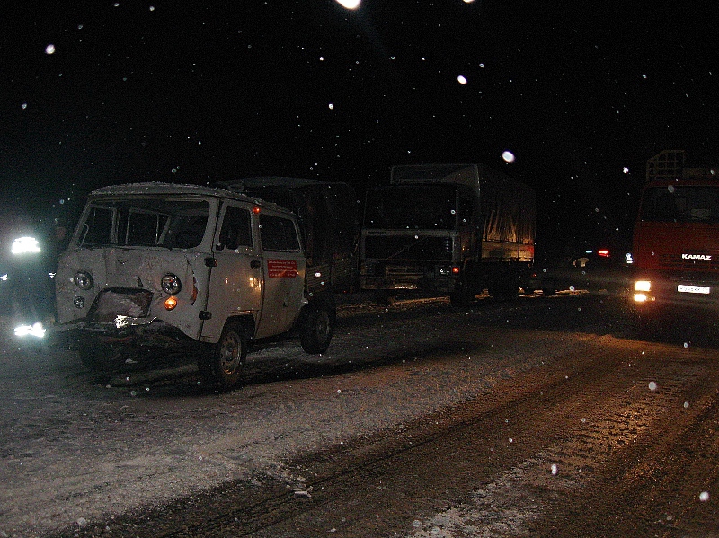 Сразу четыре автомобиля столкнулись на трассе «Вологда — Новая Ладога». Авария произошла накануне, 21 декабря, на 18-ом километре трассы неподалеку от поселка Сосновки около шести часов вечера, сообщает ИА «СеверИнформ — Новости Вологодской области» со ссылкой на областное Управление ГИБДД. 39-летний водитель грузовика «Volvo» не сумел вовремя затормозить и столкнулся с «УАЗиком». От удара внедорожник отбросило на стоящий на светофоре автомобиль «ГАЗ». После внезапной остановки «Volvo» сзади в него врезался «Chevrolet Lanos». В результате аварии пострадали 22-летний водитель и пассажиры «УАЗа». Одна пассажирка с переломом ноги и сотрясением мозга была госпитализирована. Остальные отделались ушибами. Пострадавших из автомобиля деблокировали спасатели. Подробности аварии сейчас устанавливают следователи.