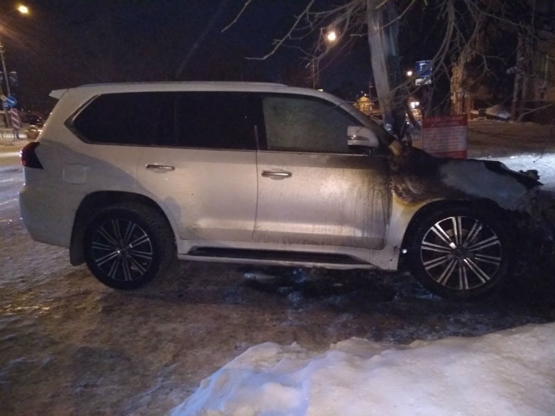 «Лексус LX 570» выпуска 2018 года сожгли около нового "Перекрестка" в центре города.