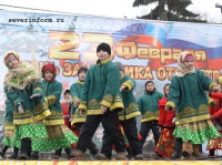День защитника Отечества отмечают в центре Вологды. Праздничное мероприятие началось в 12 часов дня на площади Революции в областной столице, сообщает ИА «СеверИнформ – Новости Вологды».